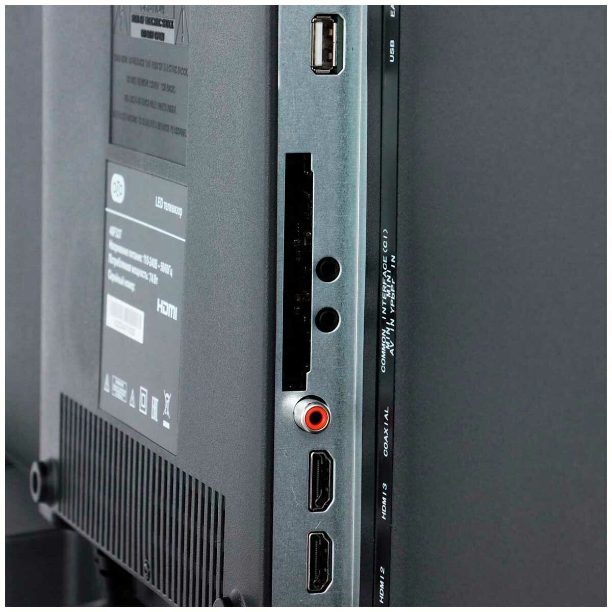 Разъемы и интерфейсы: AV-вход, выход на наушники, композитный видеовход, вход HDMI x 3, USB Type-A, слот CI, выход аудио коаксиальный;