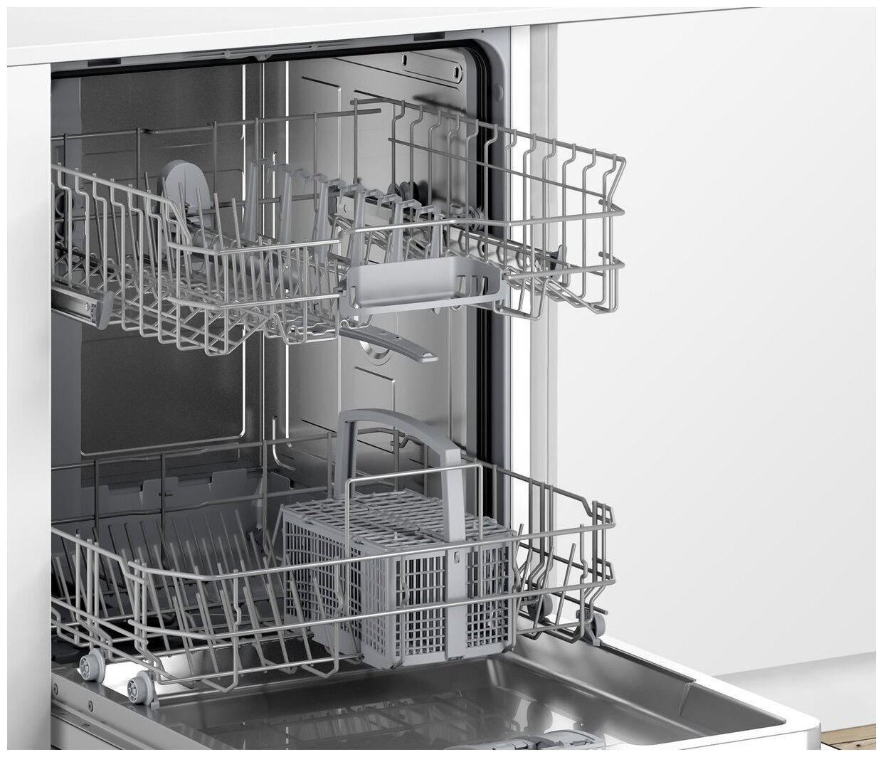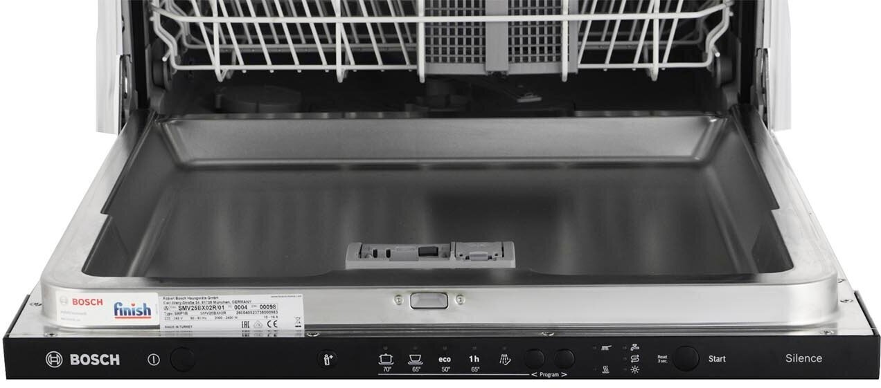 линейка: Serie 2; полноразмерная, встраиваемая полностью, ширина 59.8 см; вместимость: 12 комплектов; 5 программ мойки; расход воды 10.5 л; конденсационная сушка класса A; таймер отсрочки запуска; класс энергопотребления A; защита от детей; уровень шума при работе 48 дБ; частичная защита от протечек