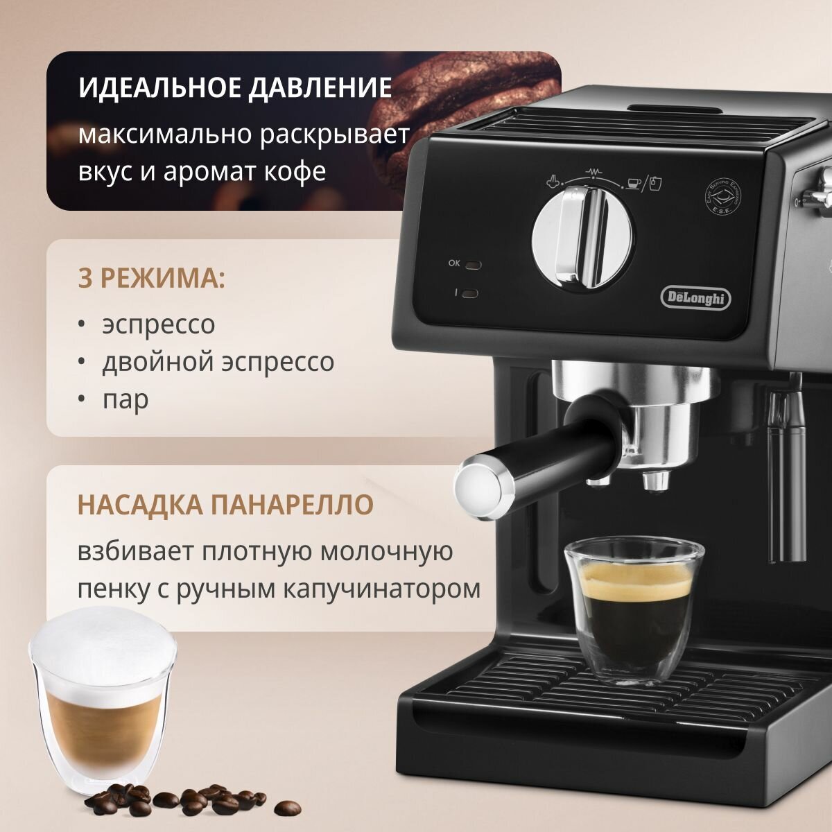 тип напитка: латте, капучино, эспрессо, латте макиато;