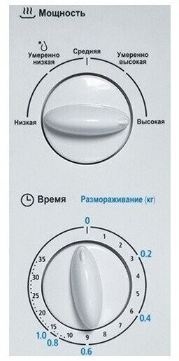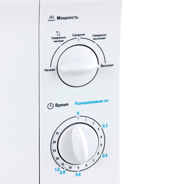 отдельно стоящая микроволновая печь, объем 20 л, мощность 700 Вт, механическое управление, поворотные переключатели