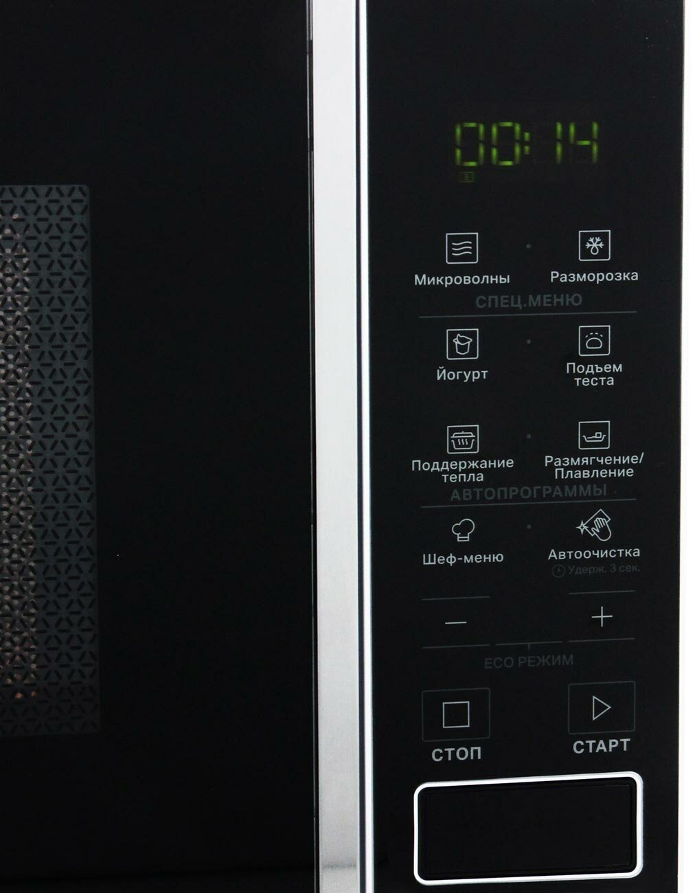 объем 20 л; мощность 800 Вт; внутреннее покрытие камеры: эмаль; сенсорные переключатели; дисплей; защита от детей;