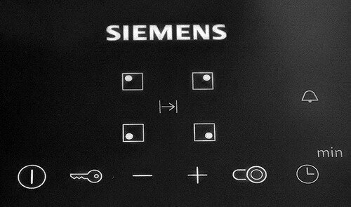 Безопасность - защитное отключение конфорок, кнопка блокировки панели, индикатор остаточного тепла;