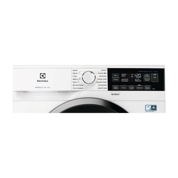 Программы стирки: Синтетика, Деликатная стирка, Быстрая, Полоскание, Отжим/Слив, Антиаллергенная с паром, Детское бельё, Шёлк, Шерсть, Спорт, Куртки, Деним, Вкл/Выкл, Хлопок, Хлопок Эко
