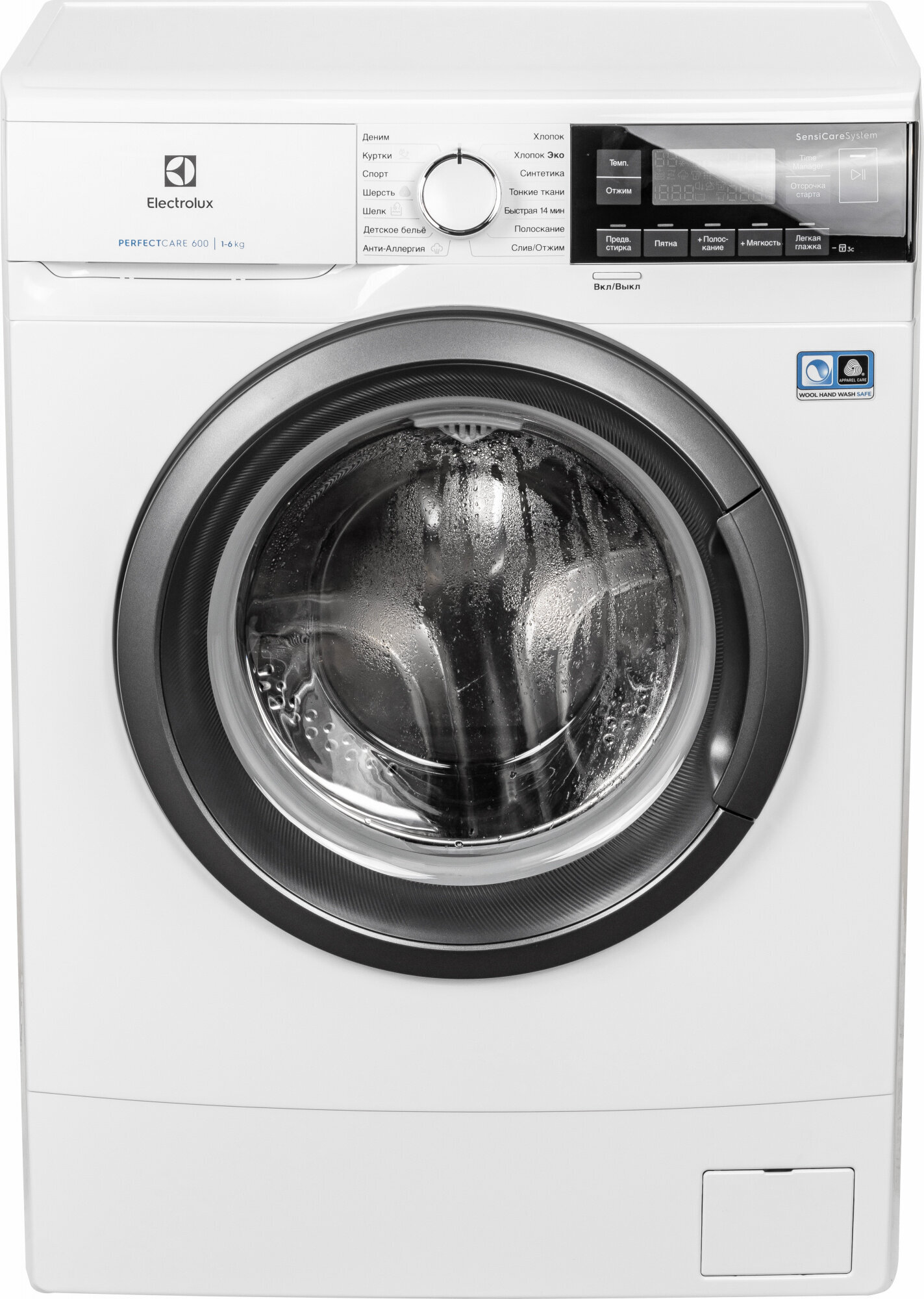 Список программ: Синтетика, Деликатная стирка, Быстрая, Полоскание, Отжим/Слив, Антиаллергенная с паром, Детское бельё, Шёлк, Шерсть, Спорт, Куртки, Деним, Вкл/Выкл, Хлопок, Хлопок Эко
