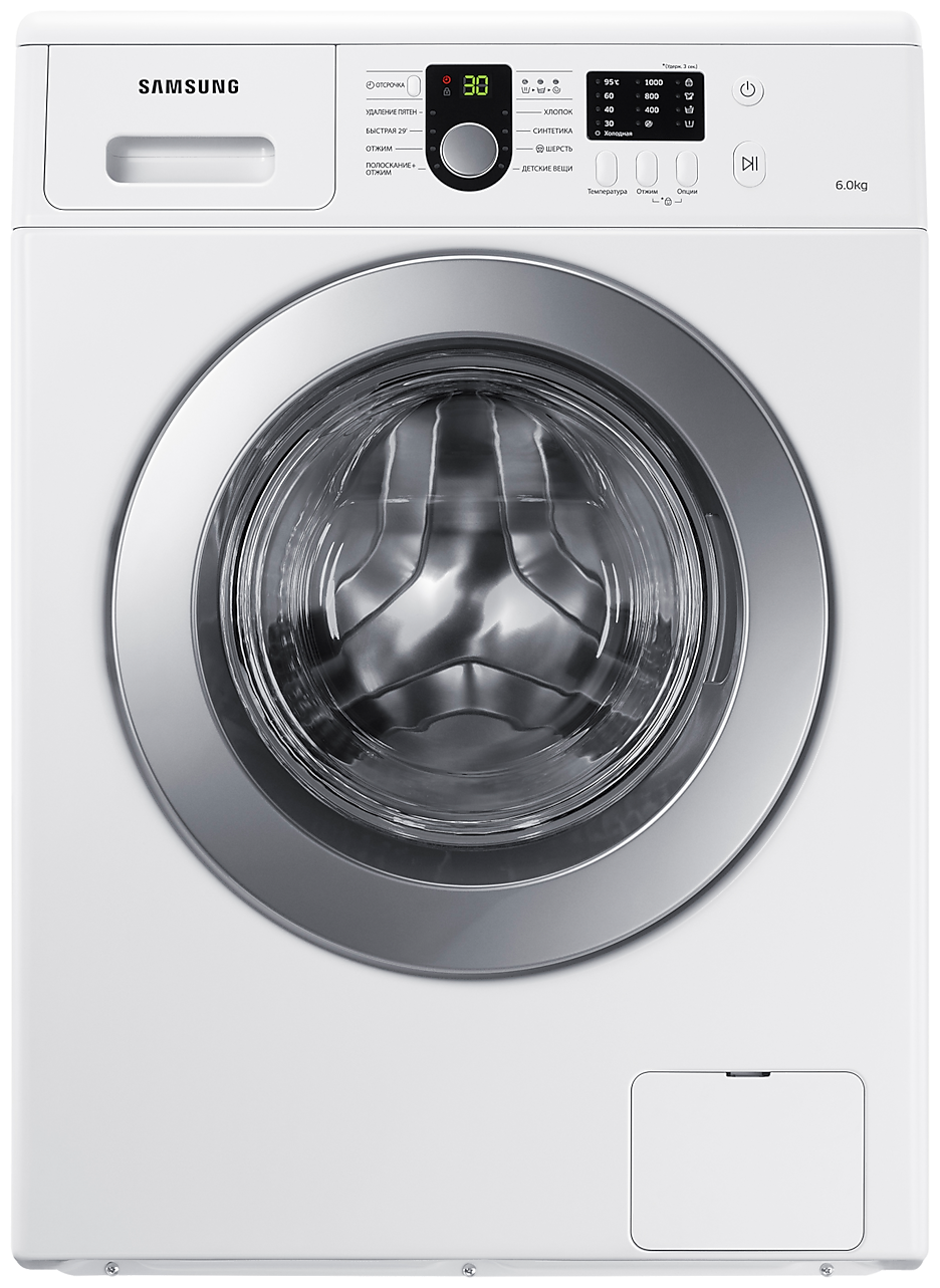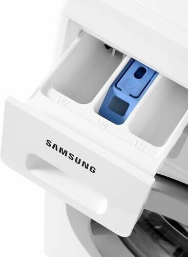 Фронтальная стиральная машинка с загрузкой до 6 кг сухого белья и максимальной скоростью отжима на уровне 1000 об/мин. Устройство может быть причислено к решениям бюджетного уровня, но при этом оно может похвастаться наивысшим классом стирки и энергопотребления — «А». Благодаря улучшенным функциям защиты от перепадов напряжения и возникновения протечки, производитель гарантирует безопасную и долговечную работу техники. Программная часть устройства отличается рядом весьма полезных в бытовой эксплуатации функций: таймер отсрочки старта, контроль пенообразования, контроль дисбаланса белья, а также набор из 8 программ специализированной стирки. Особенностью стиральной машины Samsung WF8590NLW является система электронной системы оценки количества белья «FUZZY LOGIC», суть которой сводится к достижению наиболее оптимального использования ресурсов и времени во время стирки в зависимости от веса загруженного белья. Так, устройство автоматически взвешивает количество белья, после чего самостоятельно регулирует необходимый объем воды, длительность цикла стирки, количество полосканий, скорость вращения «центрифуги» и пр. В целом, это устройство может послужить хорошим выбор для небольшой семьи.