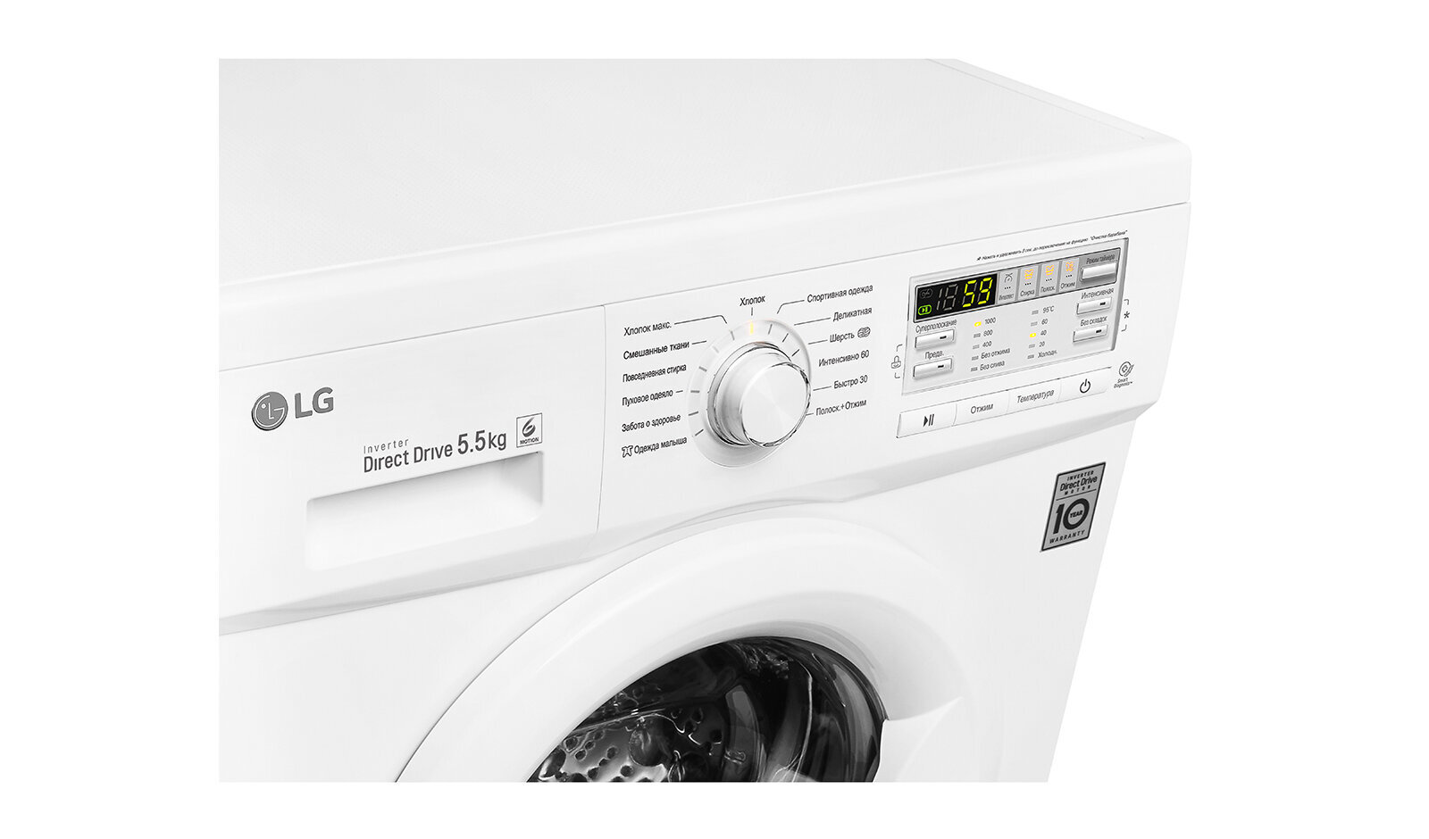 Программы: стирка смешанных тканей, экономичная программа, стирка спортивной одежды, быстрая стирка, стирка детских вещей, отмена отжима, стирка деликатных тканей, предотвращение сминания, стирка шерсти, предварительная стирка
