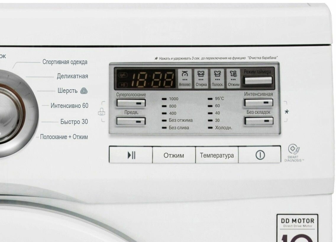 Дополнительные функции: контроль баланса, отложенный старт, сигнал окончания стирки, контроль за уровнем пены, выбор скорости отжима, выбор температуры стирки, интеллектуальное управление стиркой